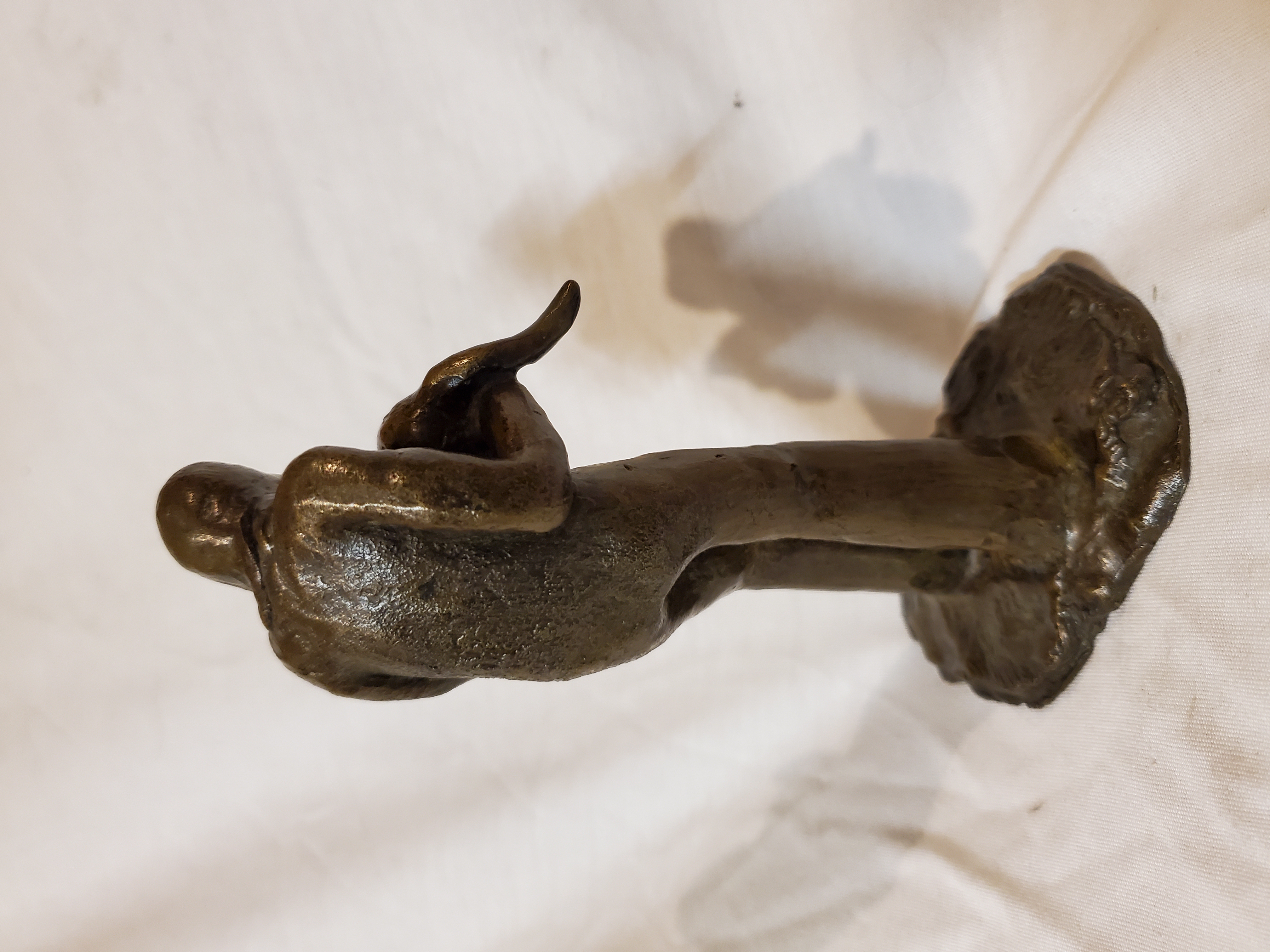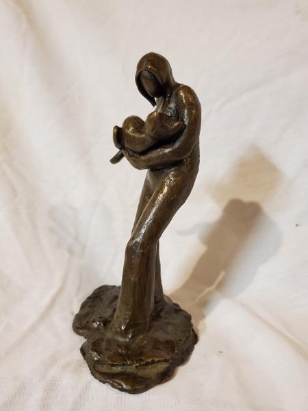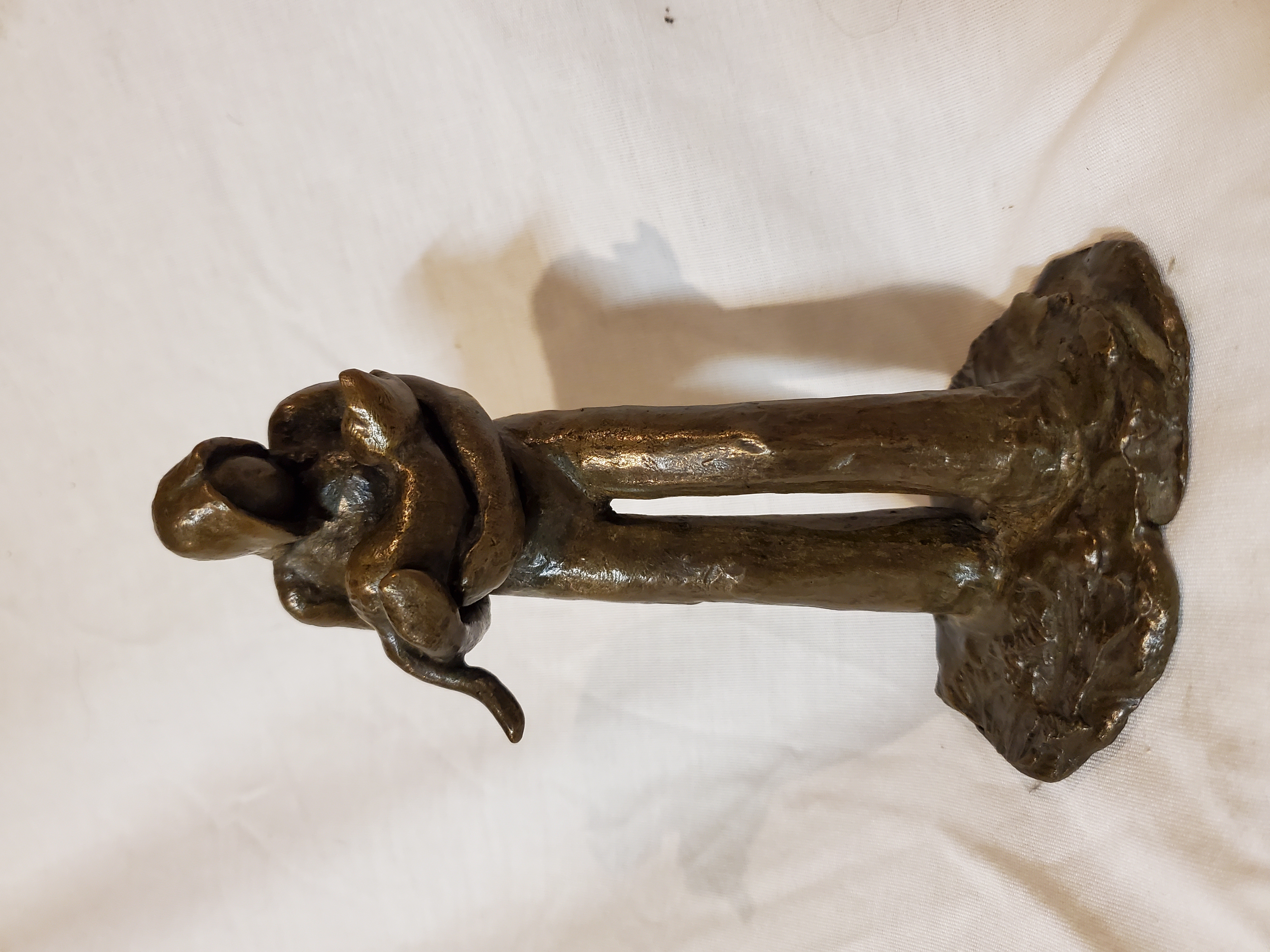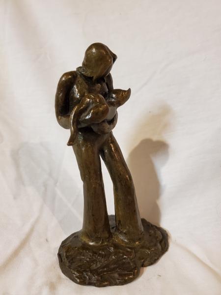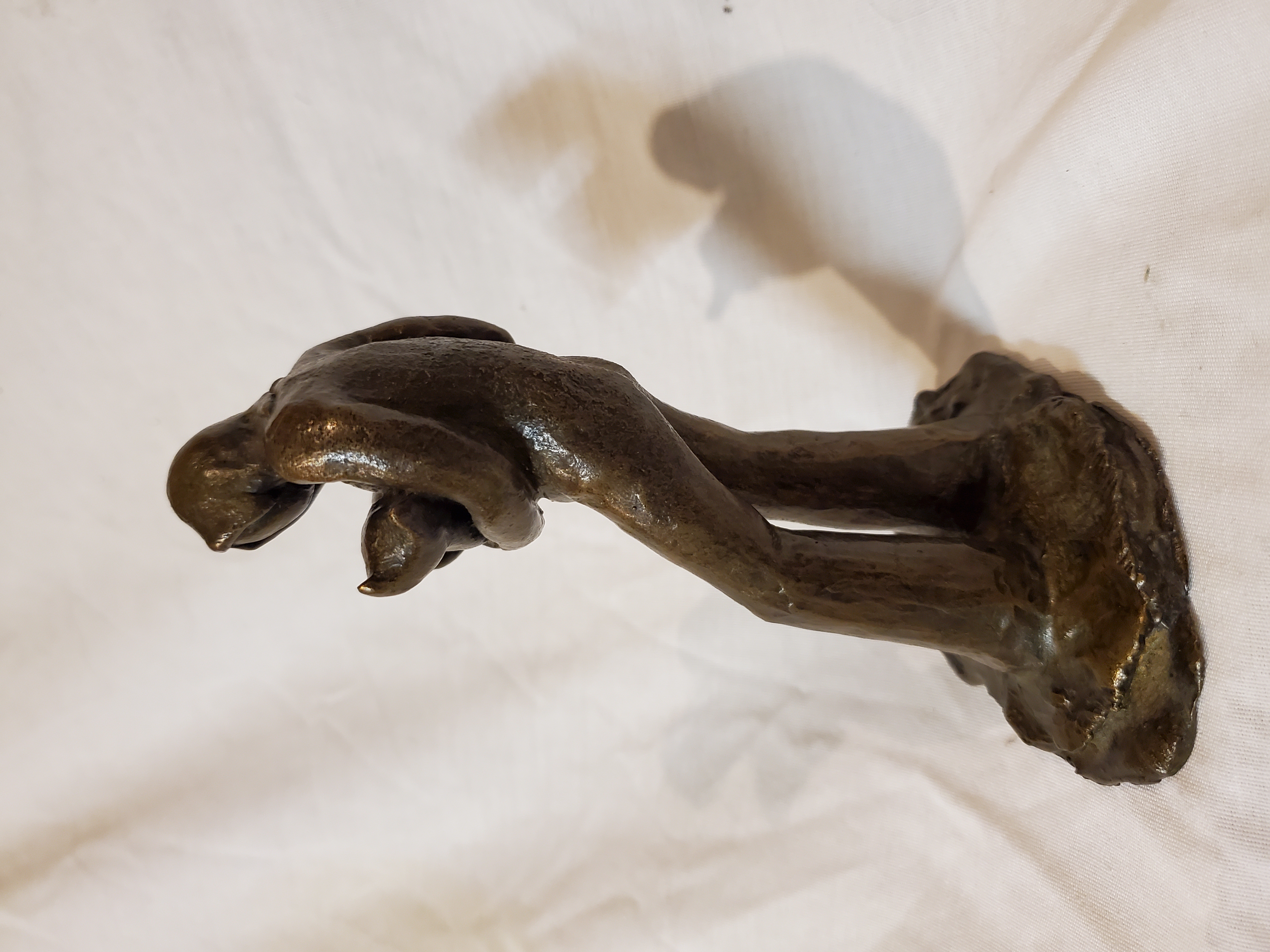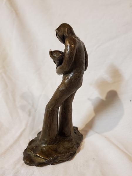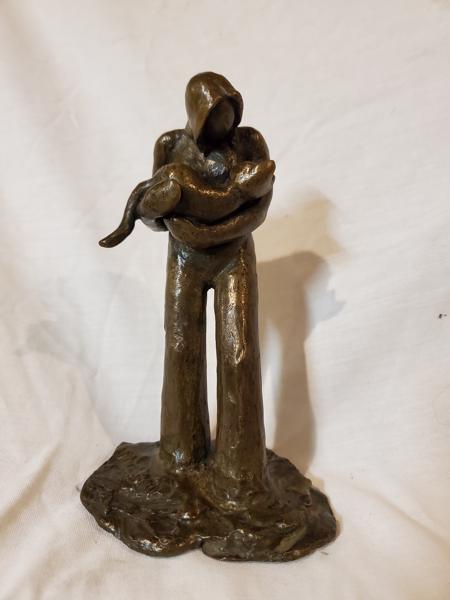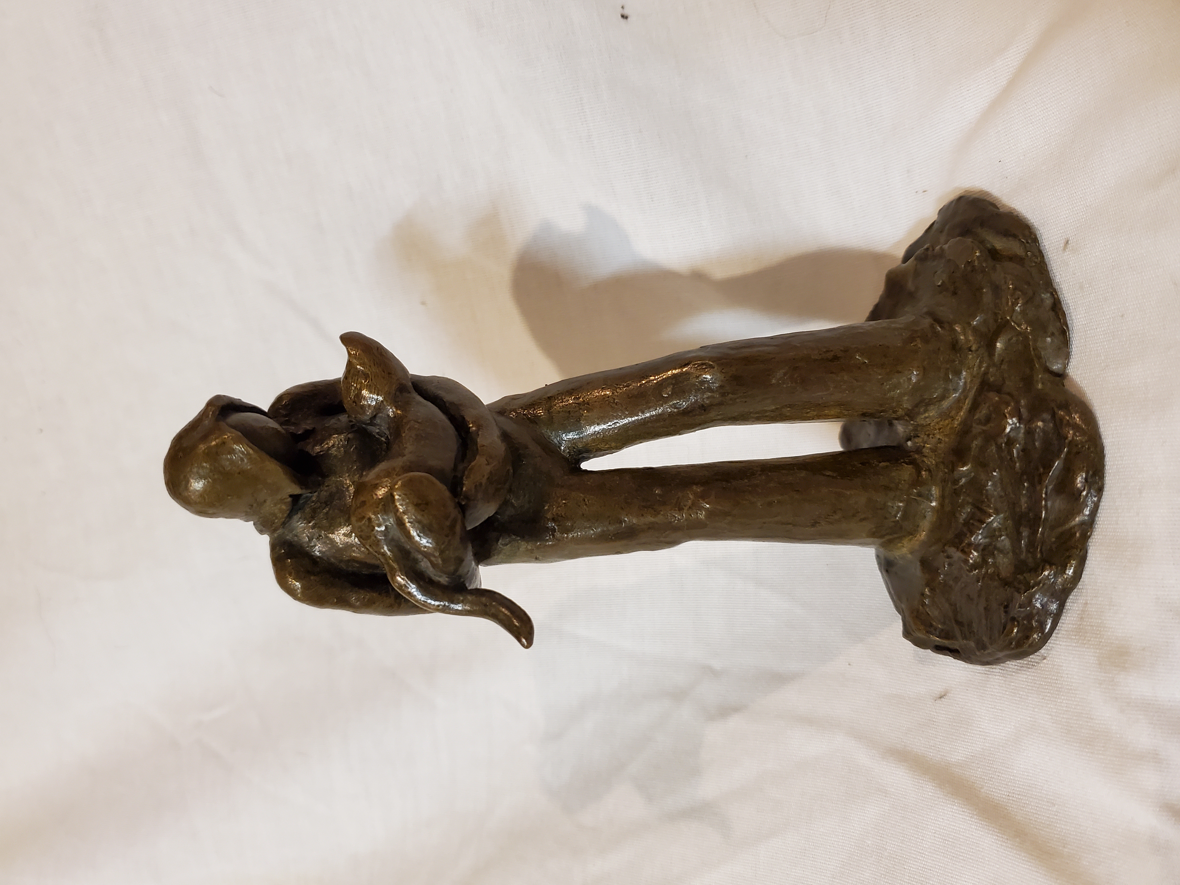 Death of a Cat Lady in Four Phases - Phase Two: Cat Becomes Child. A cast bronze sculpture by Kelley Gierach.