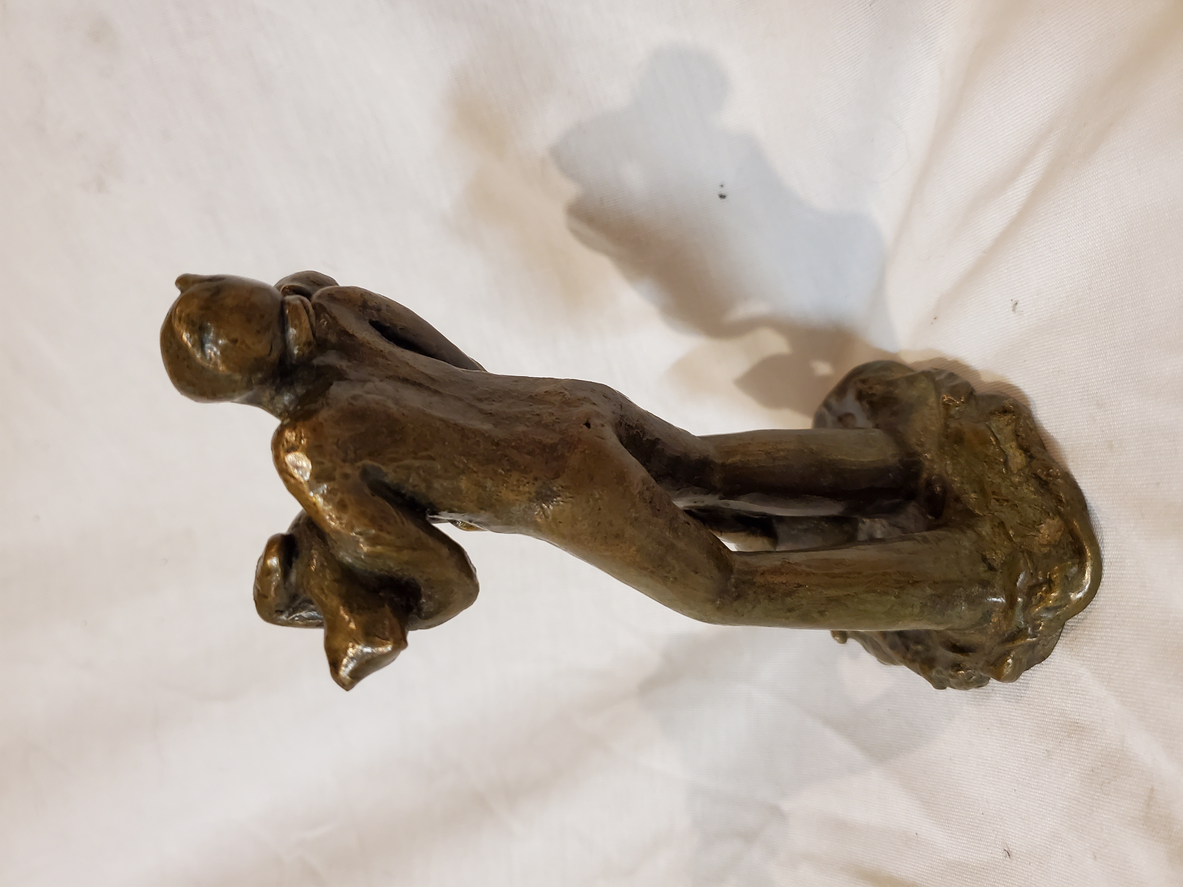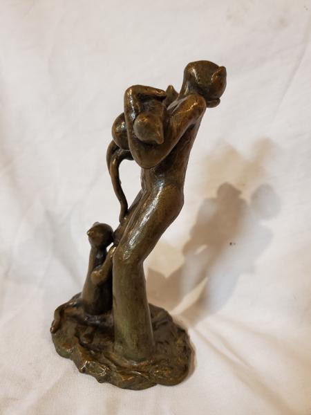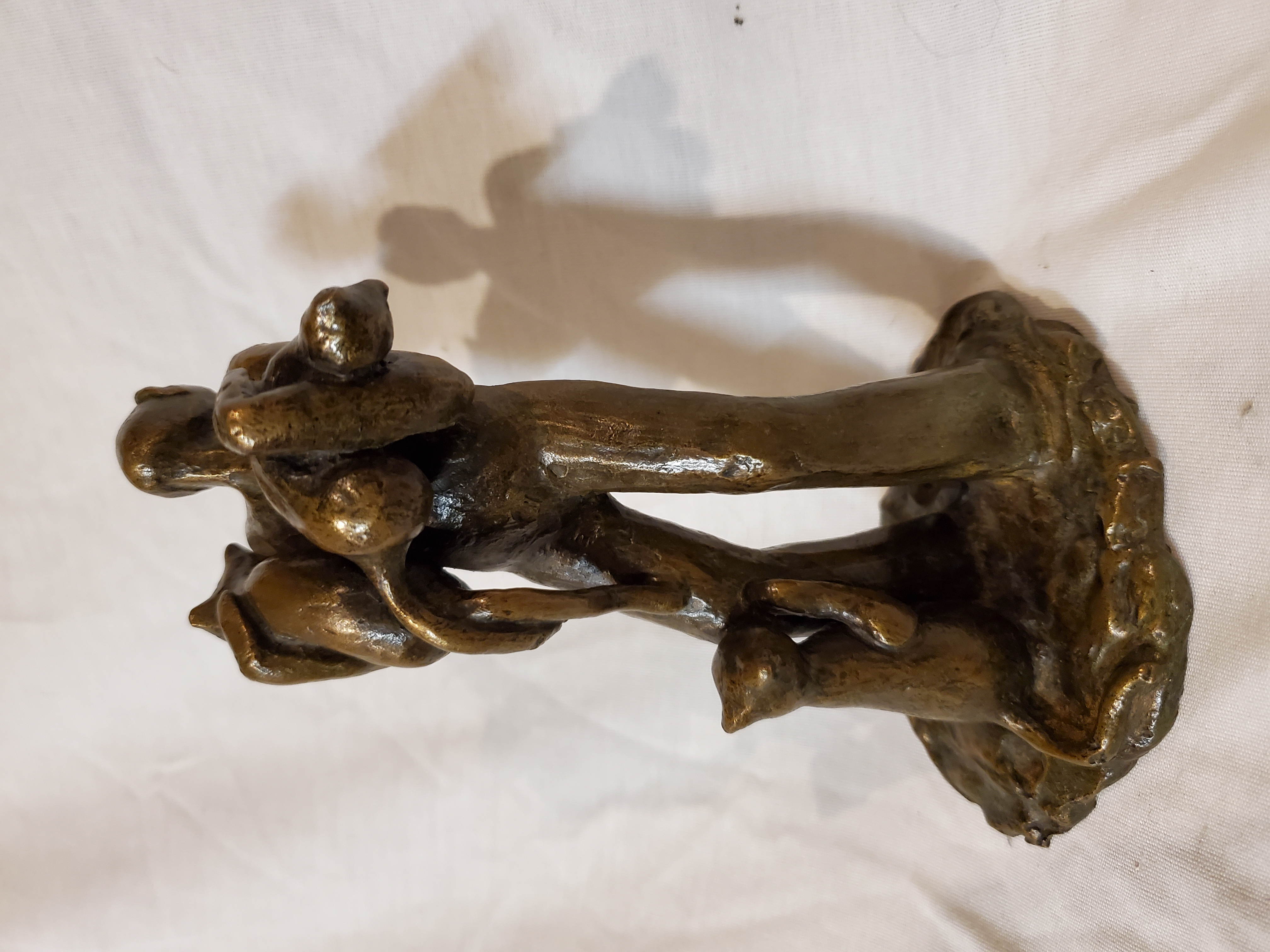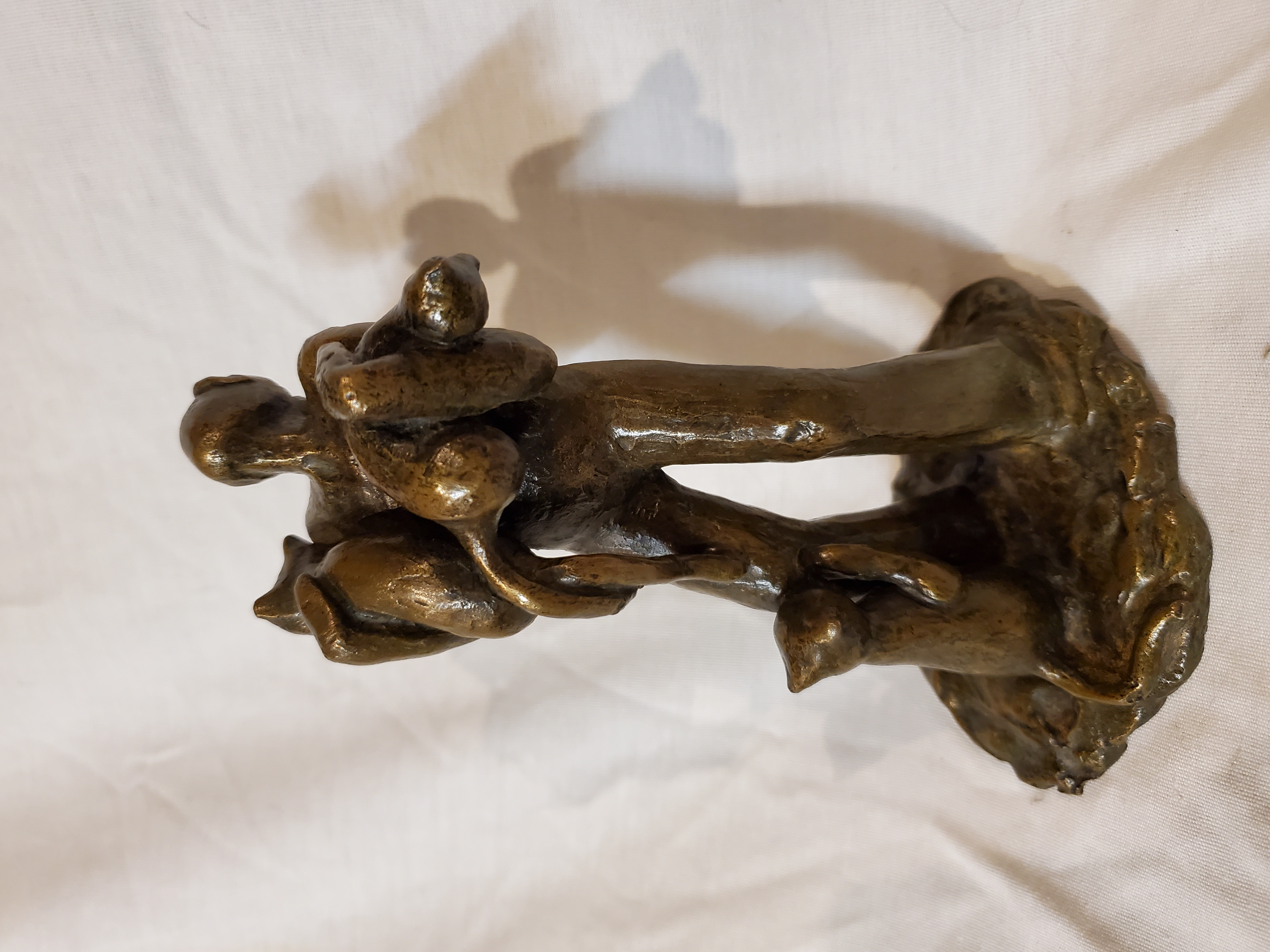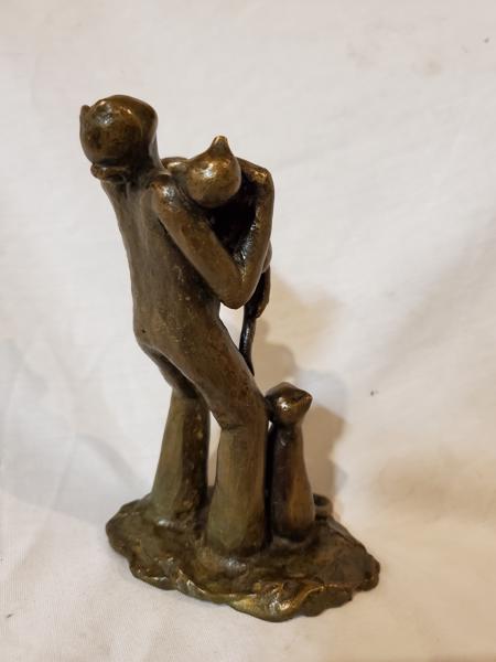 Death of a Cat Lady in Four Phases - Phase Three: Multiple Cats. A cast bronze sculpture by Kelley Gierach.