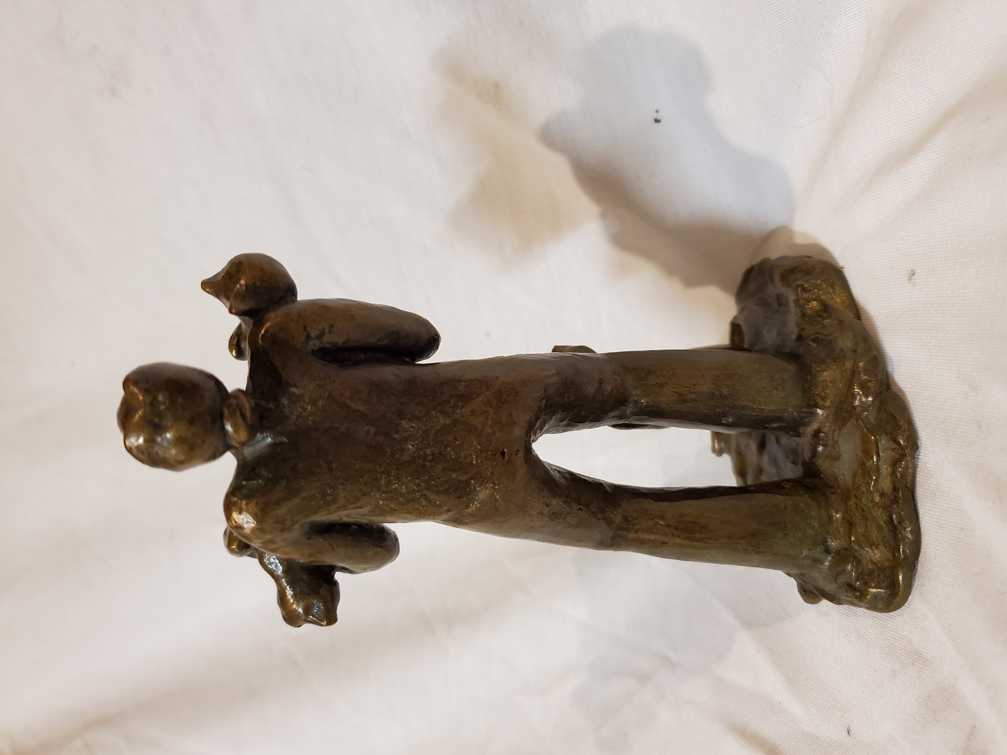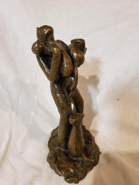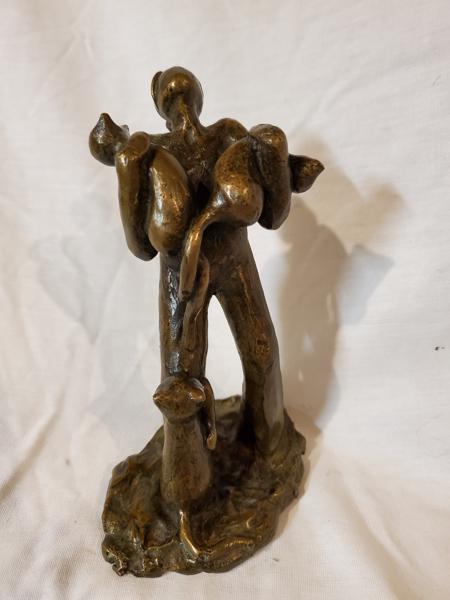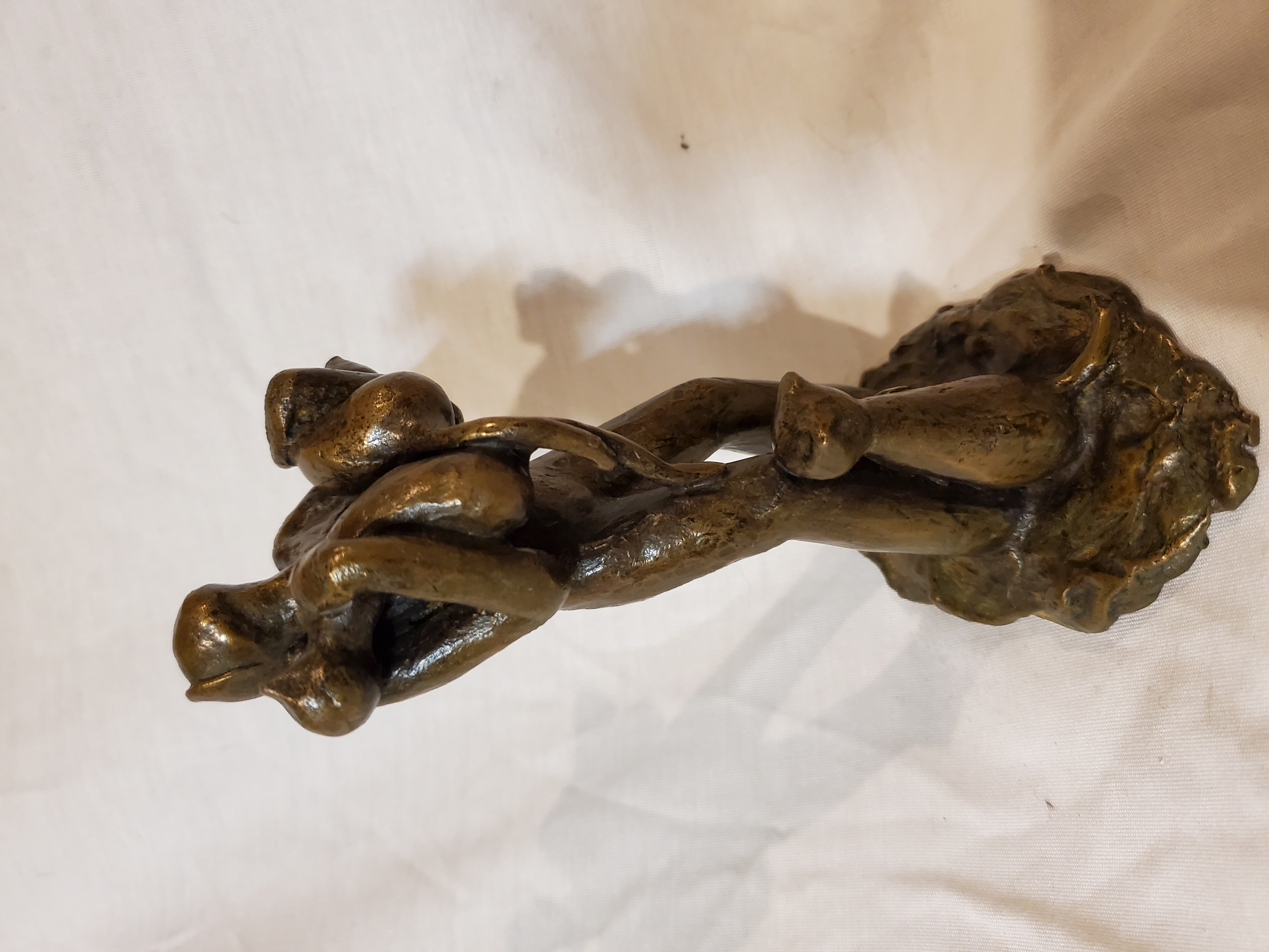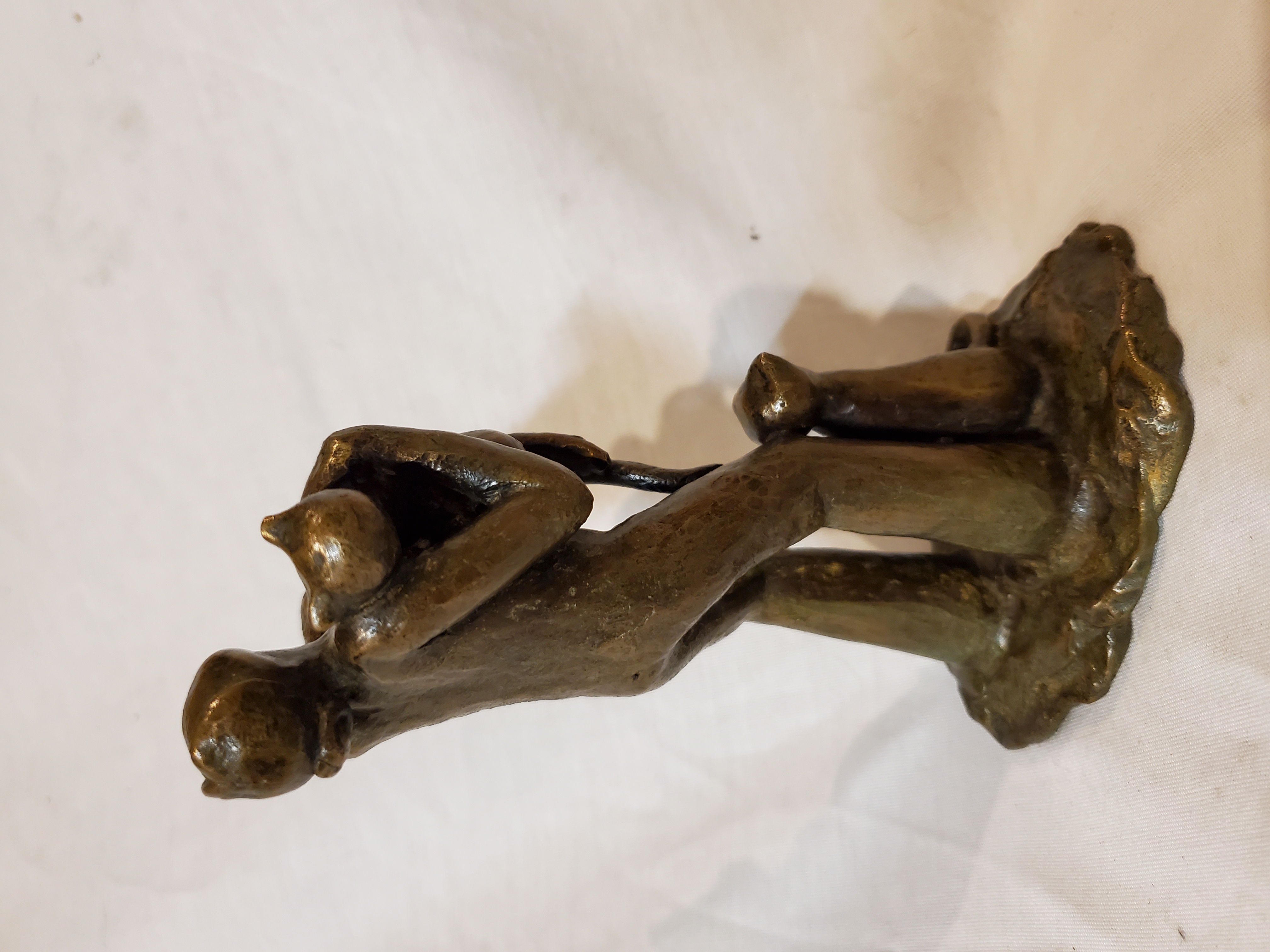 Death of a Cat Lady in Four Phases - Phase Three: Multiple Cats. A cast bronze sculpture by Kelley Gierach.