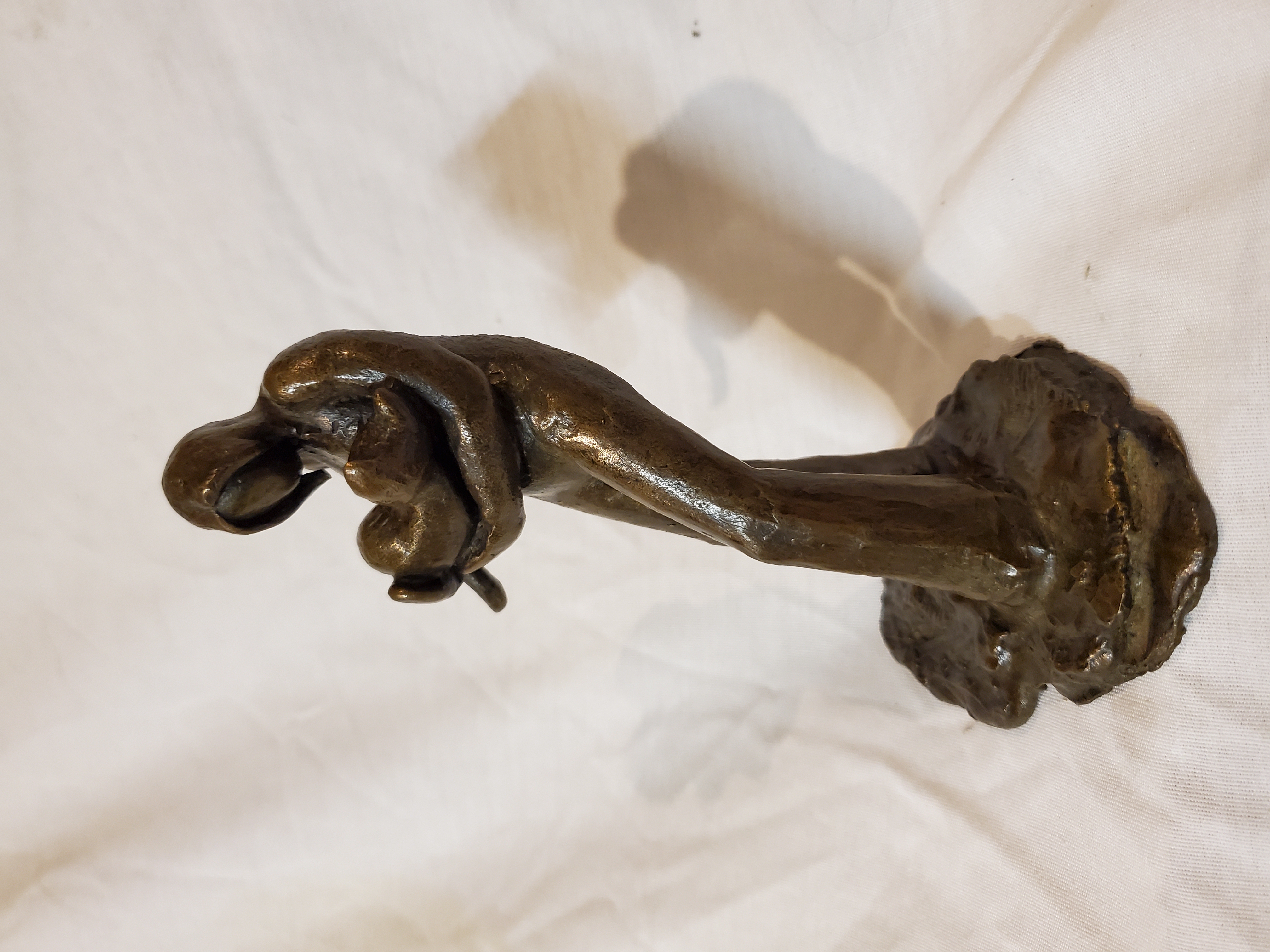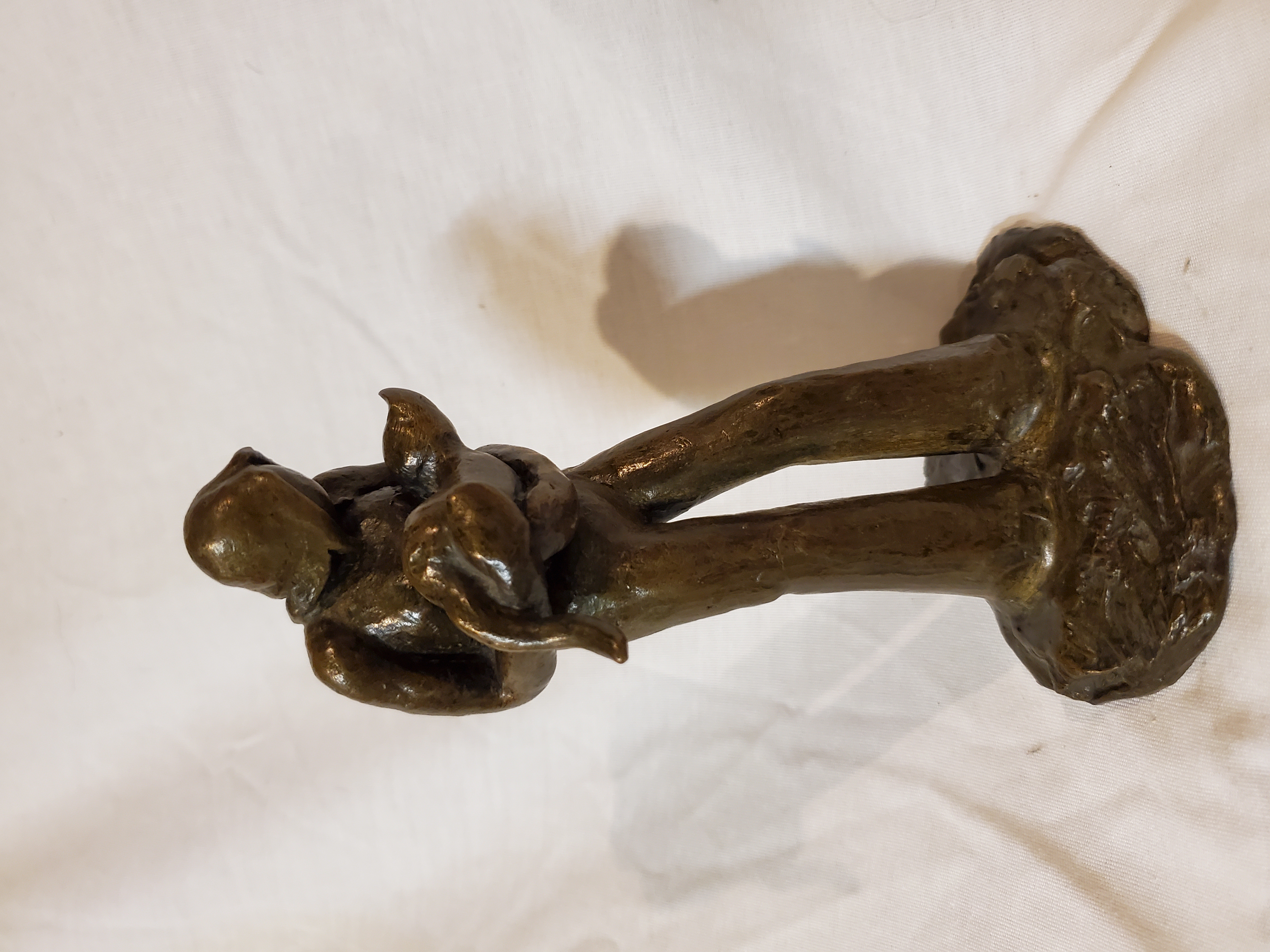 Death of a Cat Lady in Four Phases - Phase Two: Cat Becomes Child. A cast bronze sculpture by Kelley Gierach.