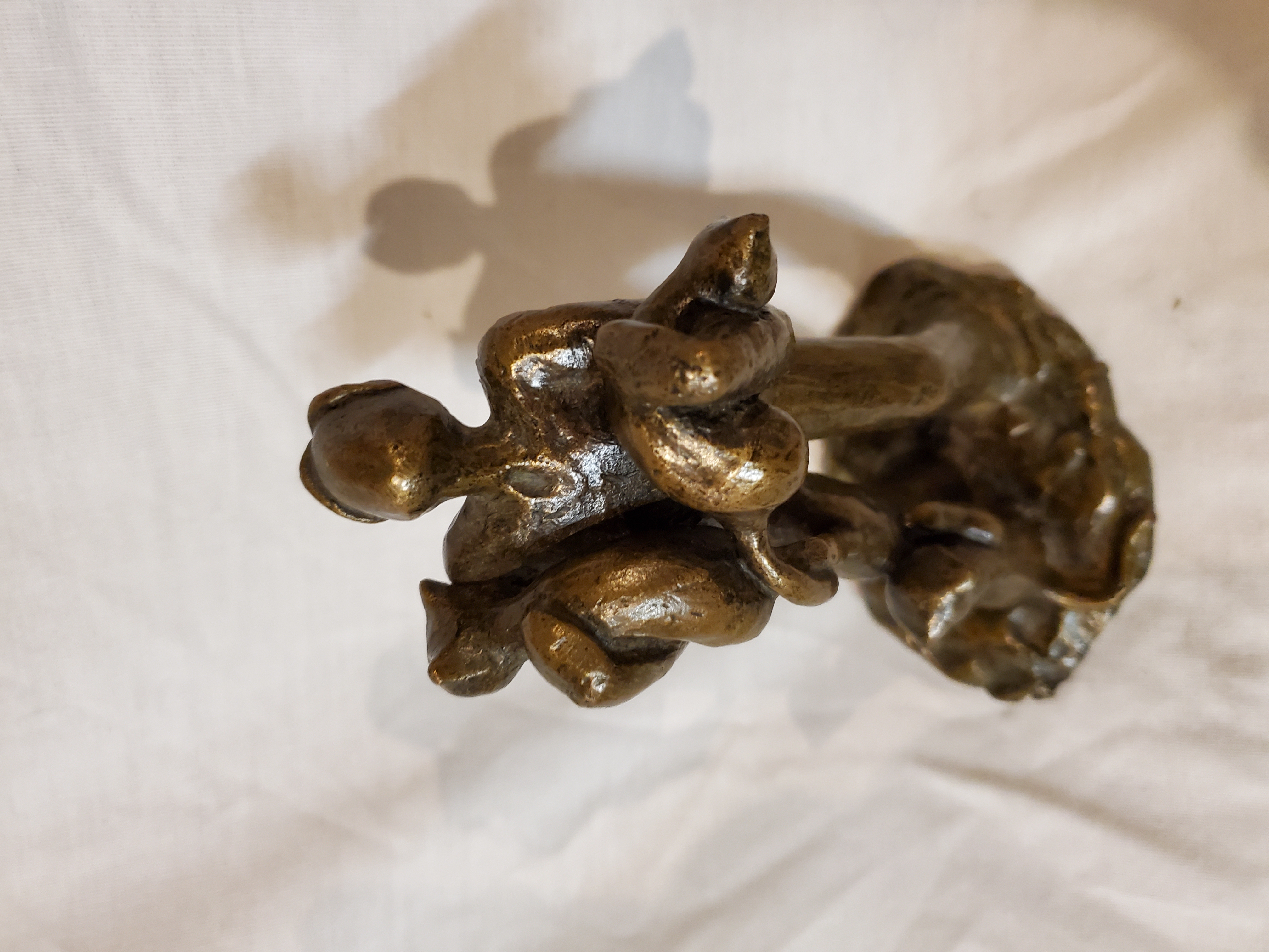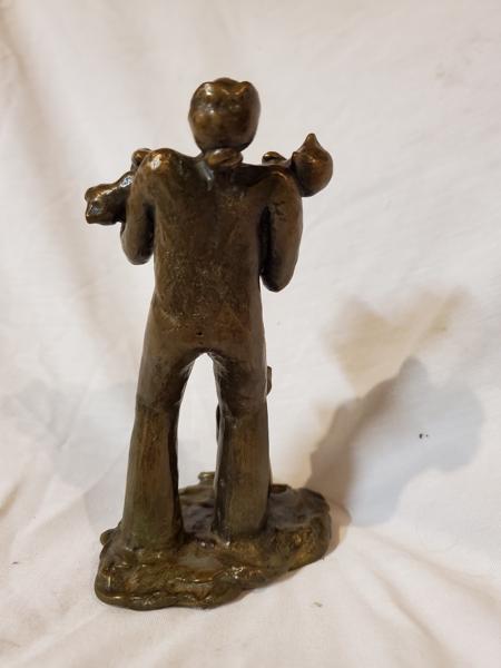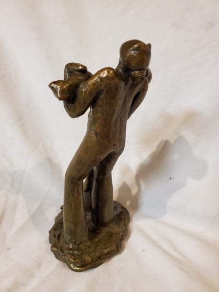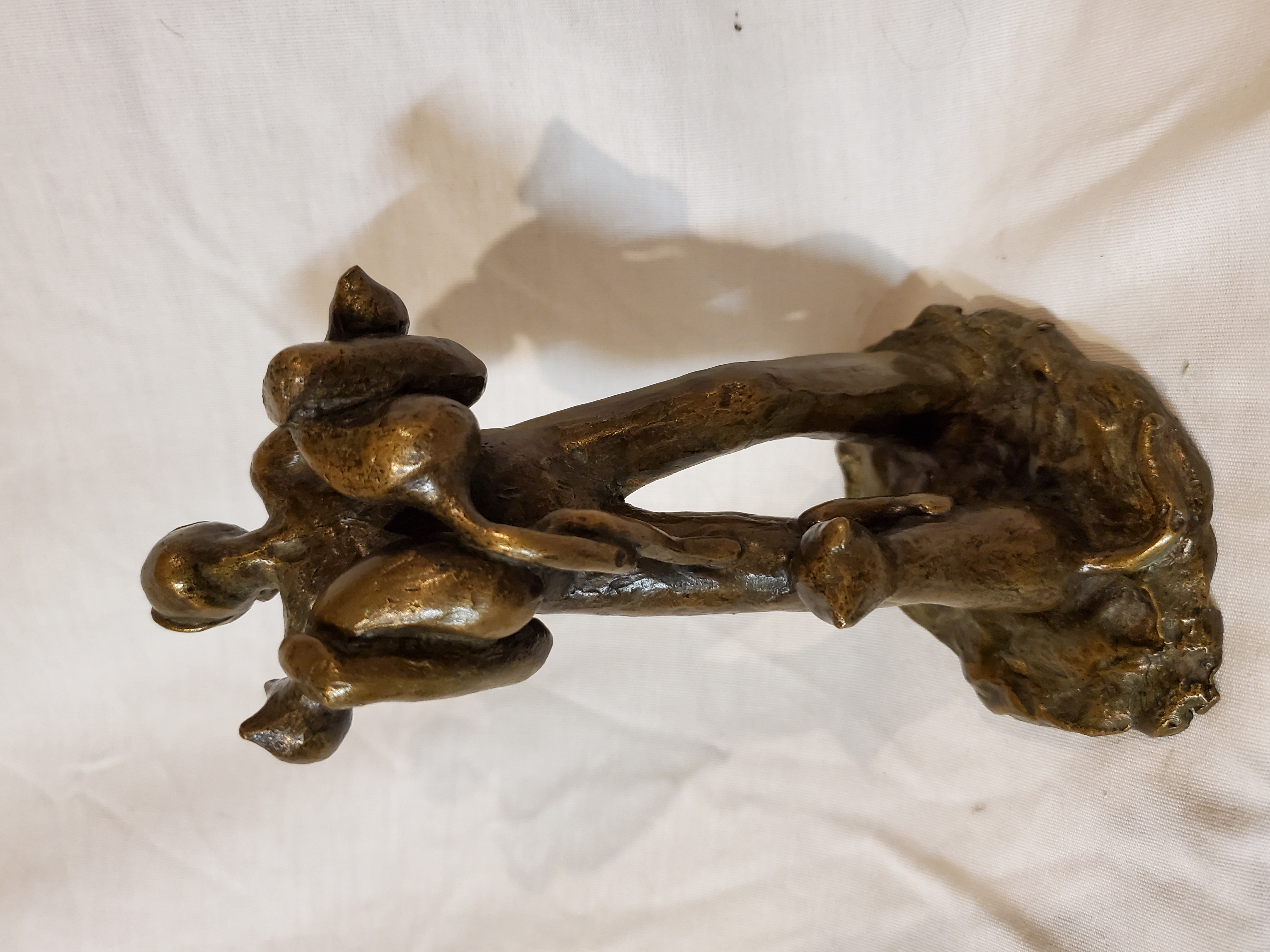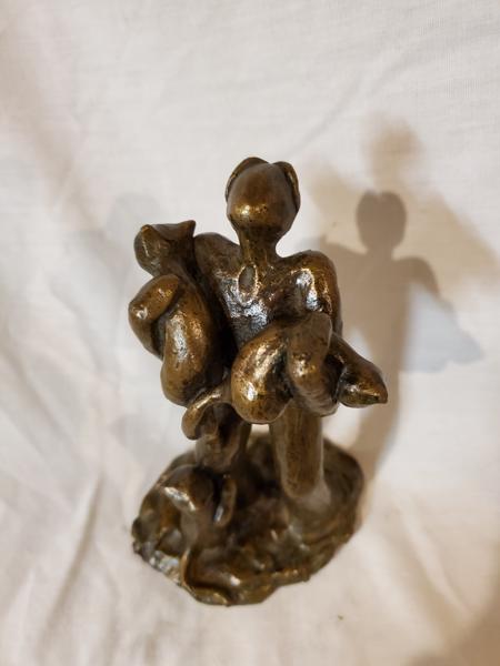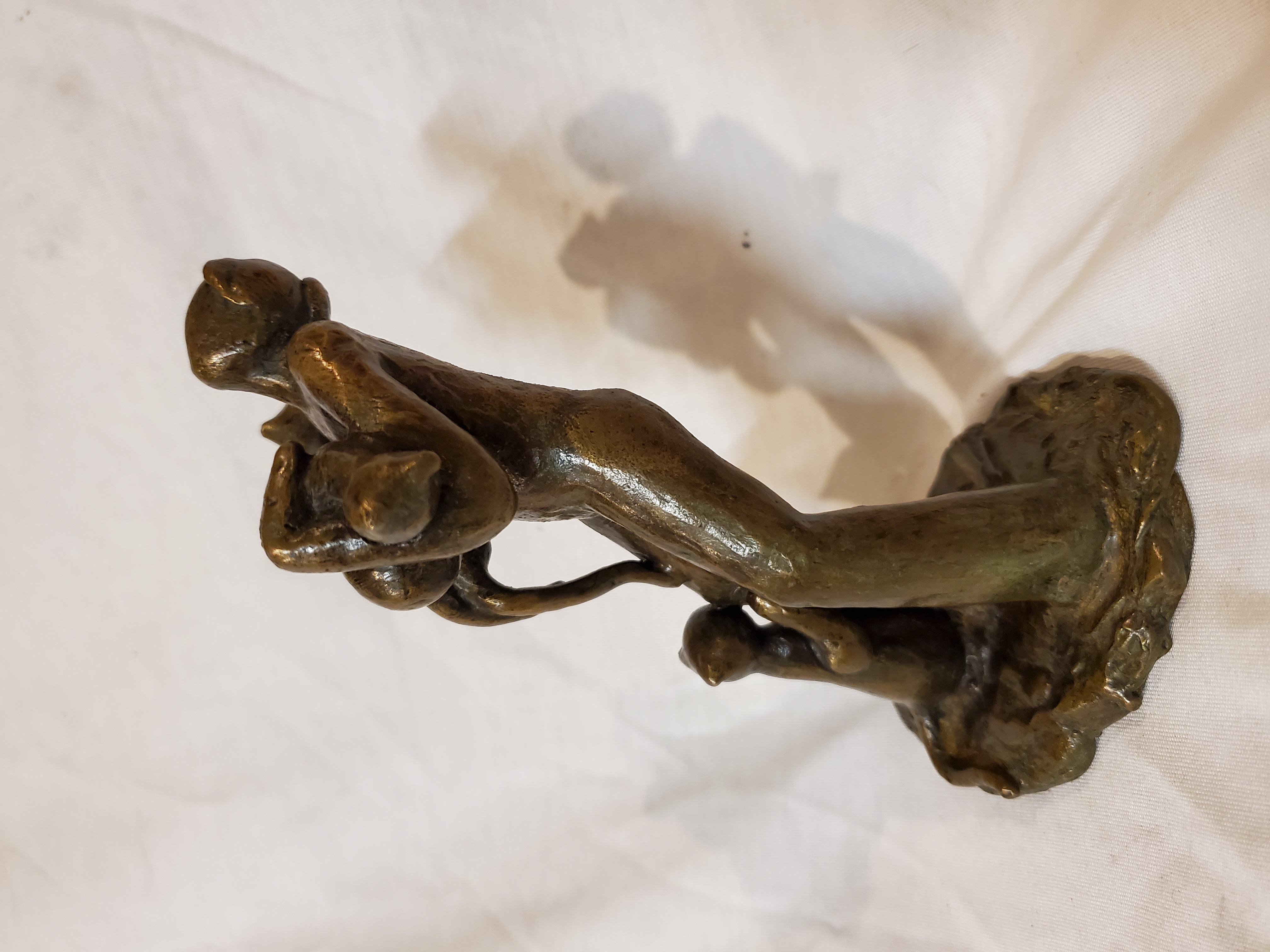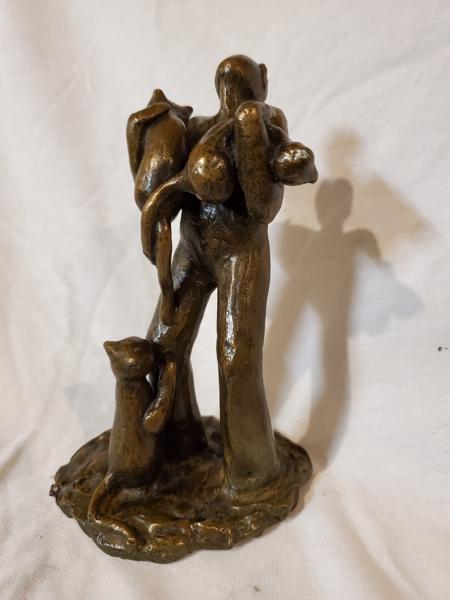 Death of a Cat Lady in Four Phases - Phase Three: Multiple Cats. A cast bronze sculpture by Kelley Gierach.
